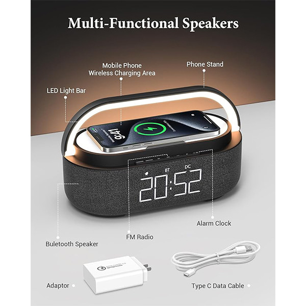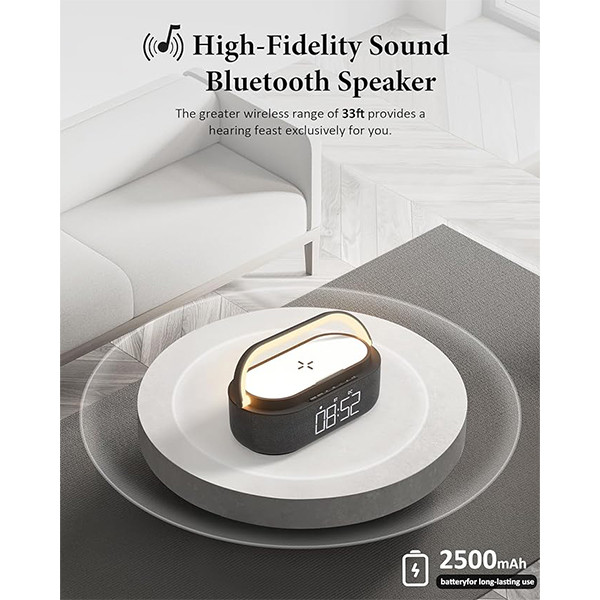 سپیکر و شارژر وایرلس دیوریکس مدل DX-W100 – طوسی، با طراحی شیک و کارآمد، اتصال بلوتوث ۵.۰ و توان خروجی ۱۰ وات، صدای شفاف و قدرتمندی ارائه میدهد. این دستگاه مجهز به شارژر وایرلس با توانهای مختلف، استند گوشی موبایل، چراغ خواب لمسی سه حالته، ساعت دیجیتال با آلارم و رادیو است. با دیوریکس، تجربهای هوشمند و مدرن داشته باشید.